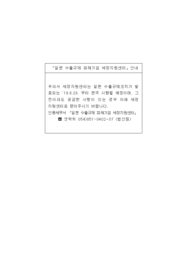 「일본 수출규제 피해기업 세정지원센터」안내