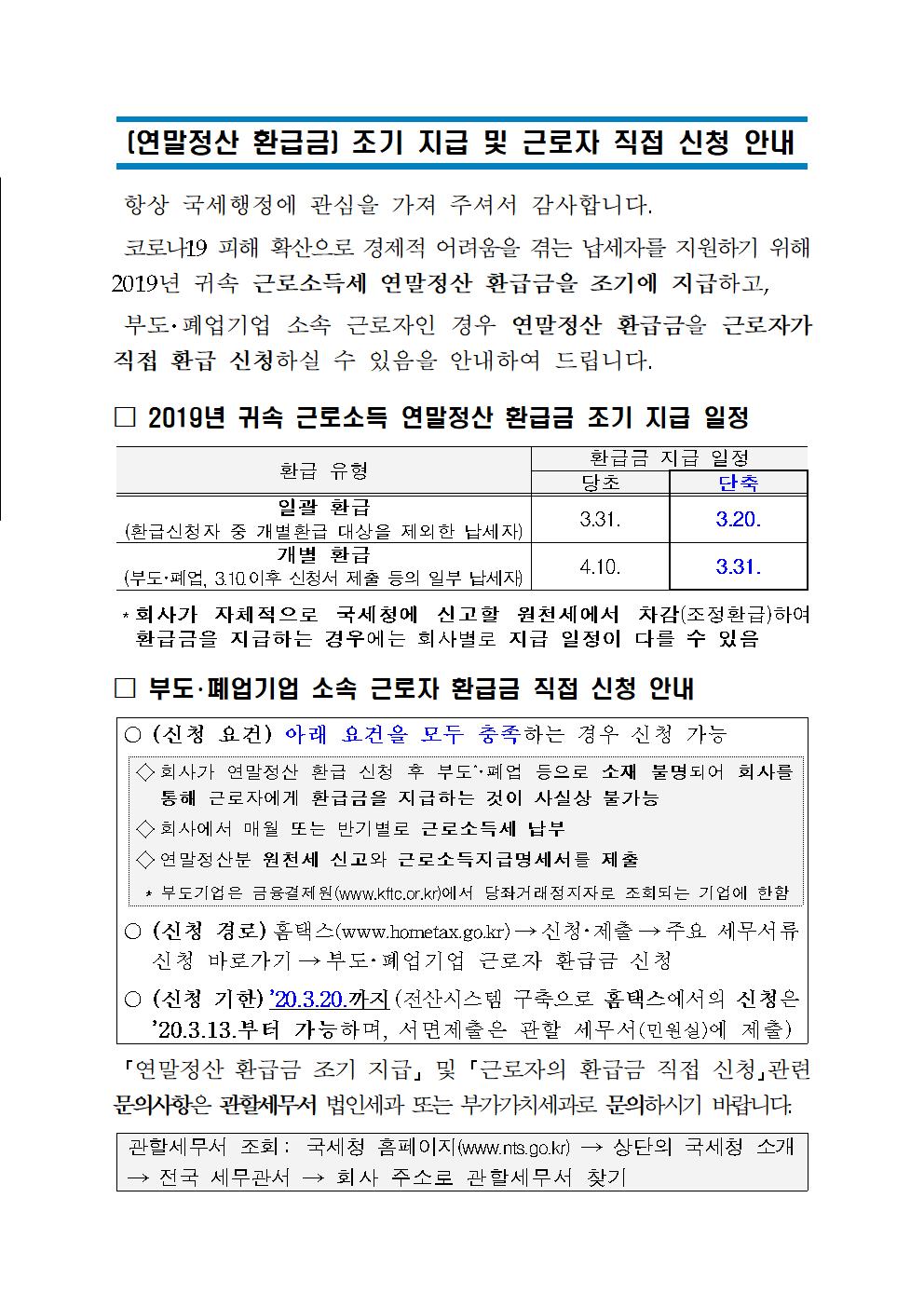 (연말정산 환급금) 조기 지급 및 근로자 직접 신청 안내