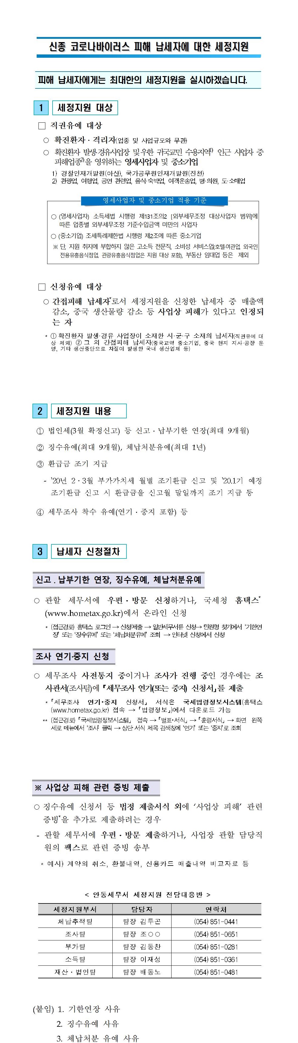 신종 코로나바이러스 피해 납세자에 대한 세정지원