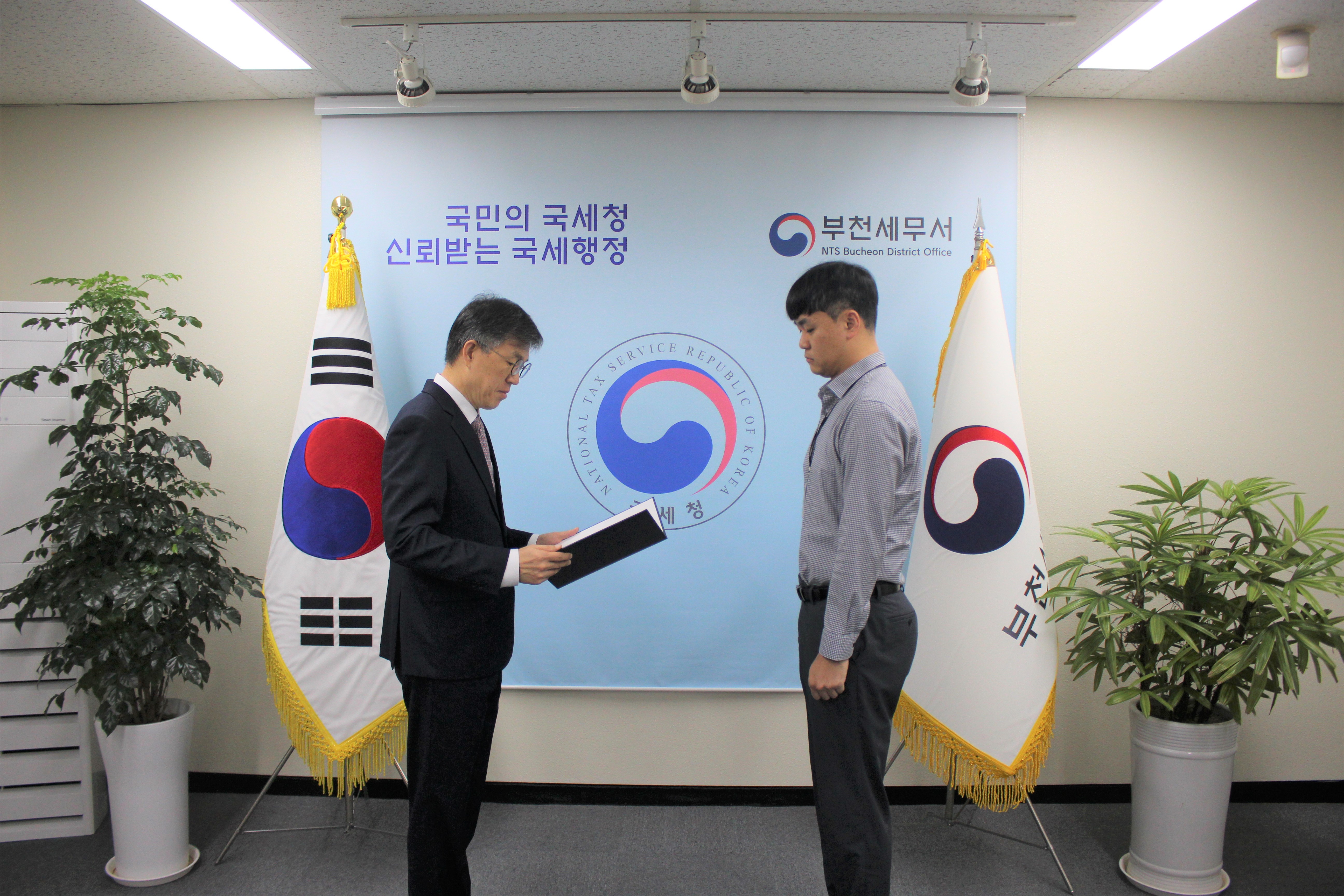 부천세무서는 매달 우수직원을 선정하여 이달의 부천인 시상식을 진행하고 있으며,