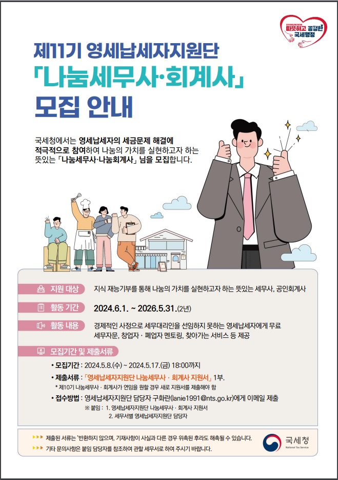 제11기 영세납세지원단「나눔세무사·회계사」공개모집