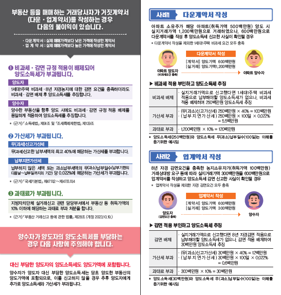 거짓계약서 작성 시 양도자, 양수자 및 공인중개사에 대한 불이익 안내