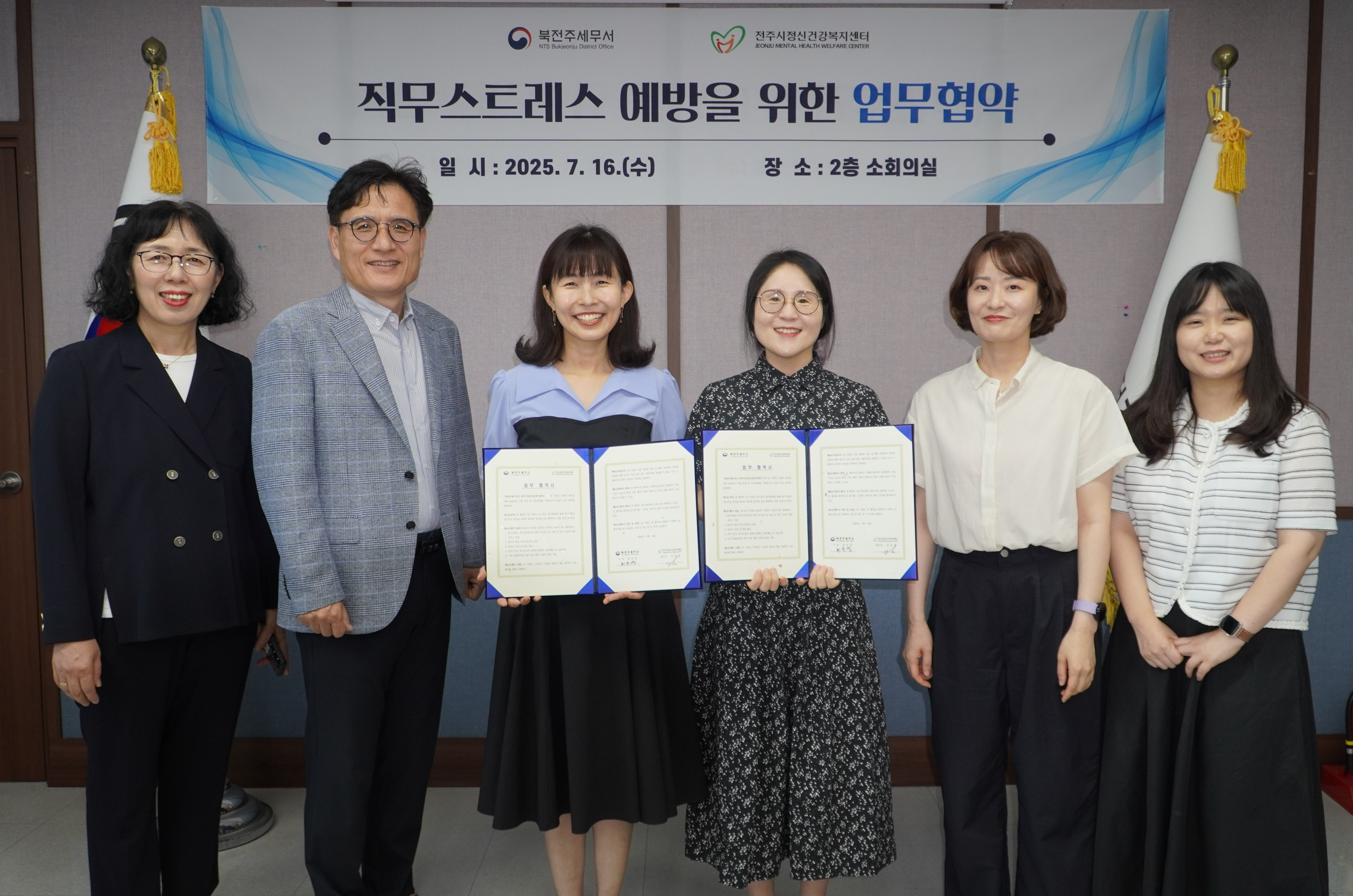 북전주세무서(서장 최은경)는 ’25. 7. 16.(수) 전주시 정신건강복지센터와 협약을 맺고 직원들의