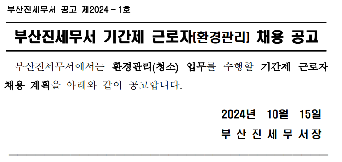 부산진세무서 기간제 근로자[환경관리] 채용 공고