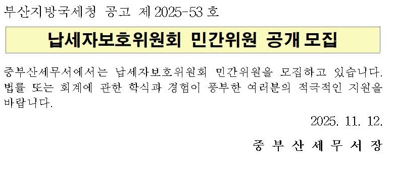 중부산세무서 납세자보호위원회 민간위원 공개모집