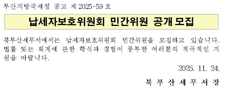 북부산세무서 납세자보호위원회 민간위원 공개모집
