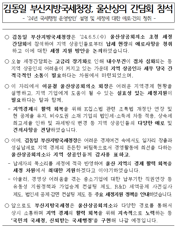 <김동일 부산지방국세청장, 울산상의 간담회 참석>