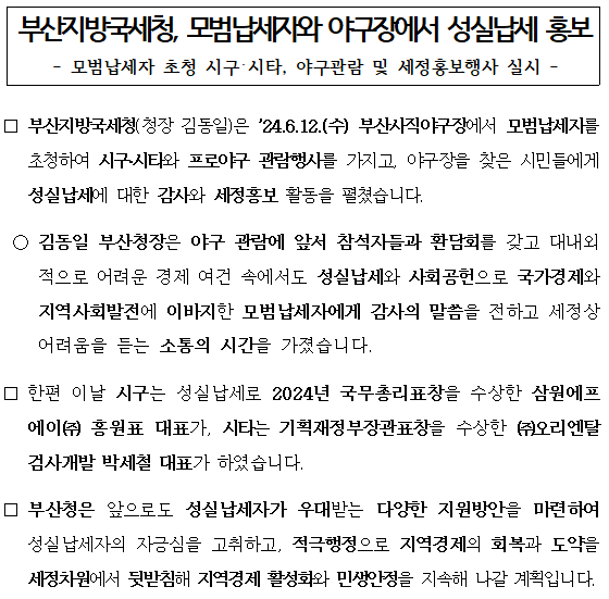 <부산지방국세청, 모범납세자와 야구장에서 성실납세 홍보>