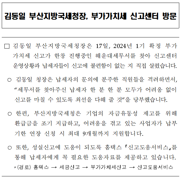 <김동일 부산지방국세청장, 부가가치세 신고센터 방문>