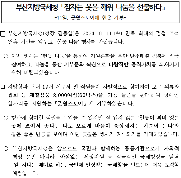 <부산지방국세청, 「잠자는 옷을 깨워 나눔을 선물하다」>