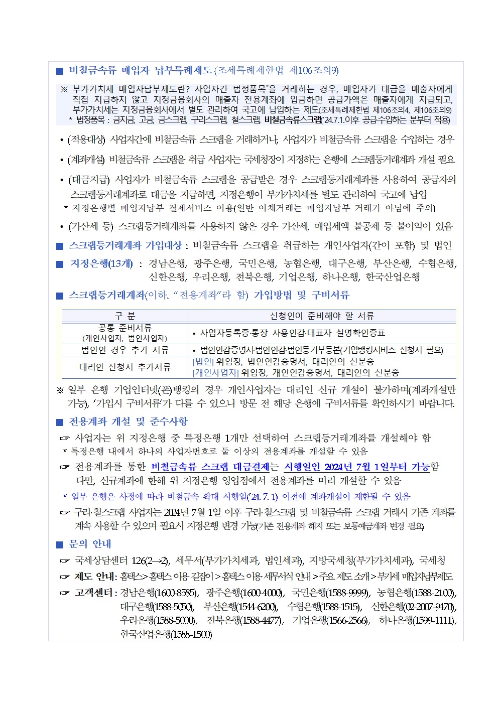비철금속류 부가가치세 매입자납부제도 시행 안내