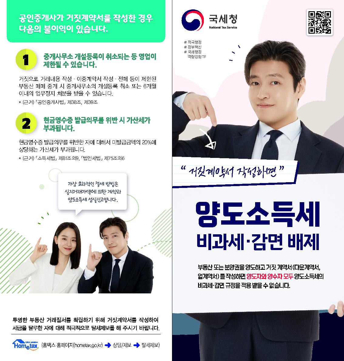 거짓 계약서 작성 시 양도소득세 비과세·감면 배제 안내