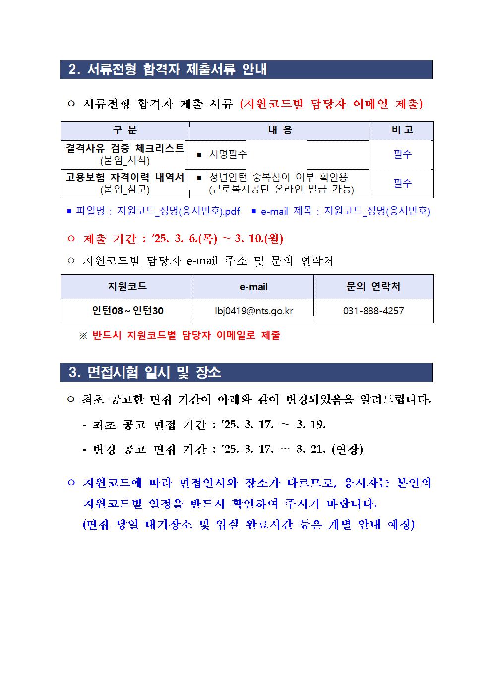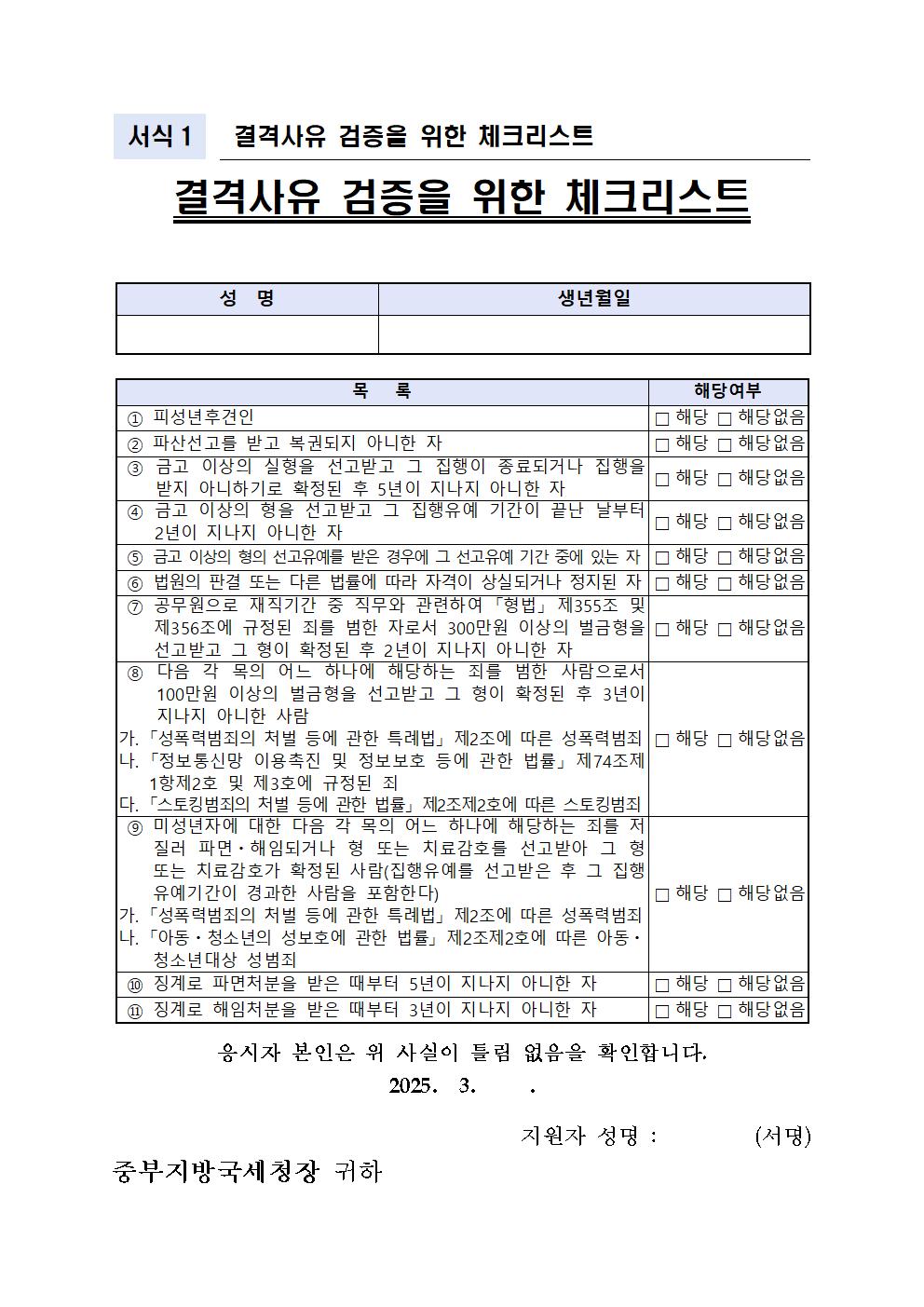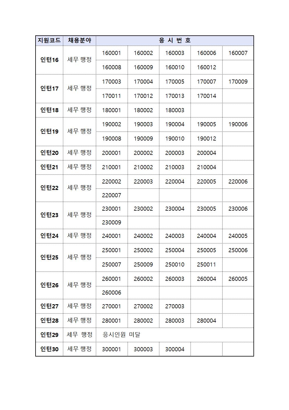 중부지방국세청 청년인터 채용 서류전형 합격자 공고