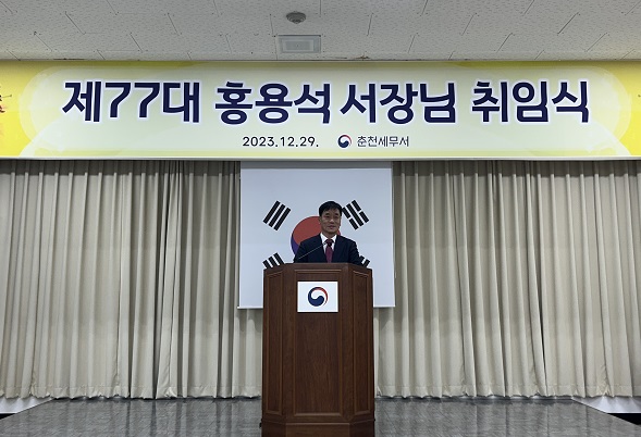 ○ 춘천세무서(서장 홍용석)는 2023년 12월 29일(금) 오후 2시 대회의실에서 '제77대 홍용석 춘천세무서장의 취임식' 행사를 진행하였습니다.