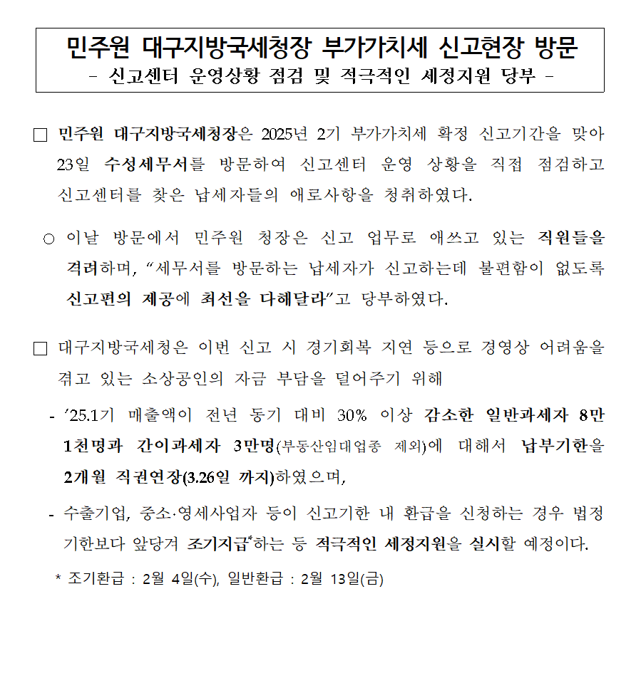 민주원 대구지방국세청장 부가가치세 신고현장 방문