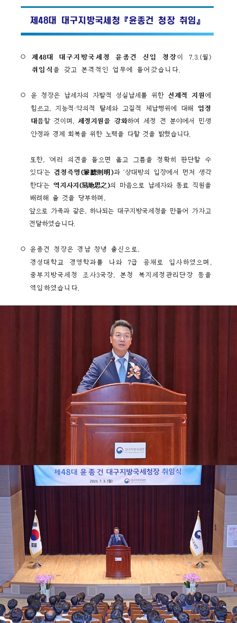 제48대 대구지방국세청 「윤종건 청장 취임」