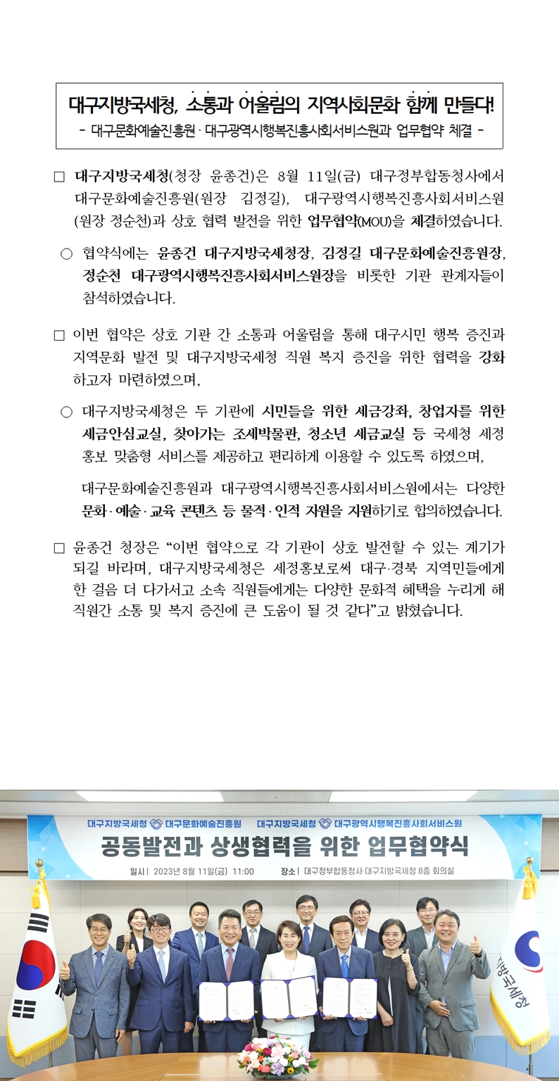 대구지방국세청, 소통과 어울림의 지역사회문화 함께 만들다!