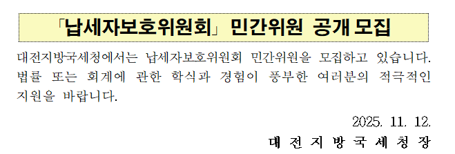 「납세자보호위원회」민간위원 공개모집