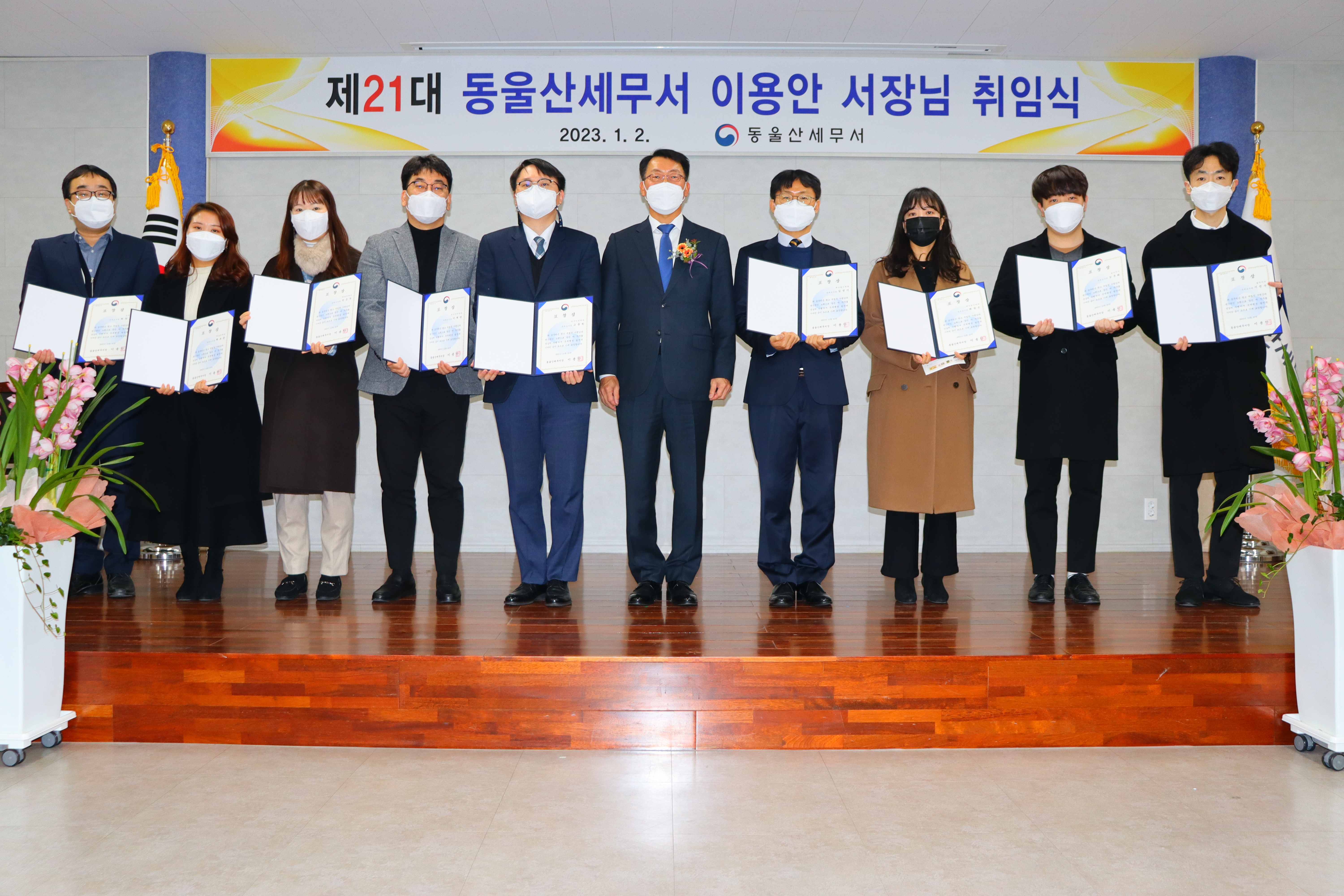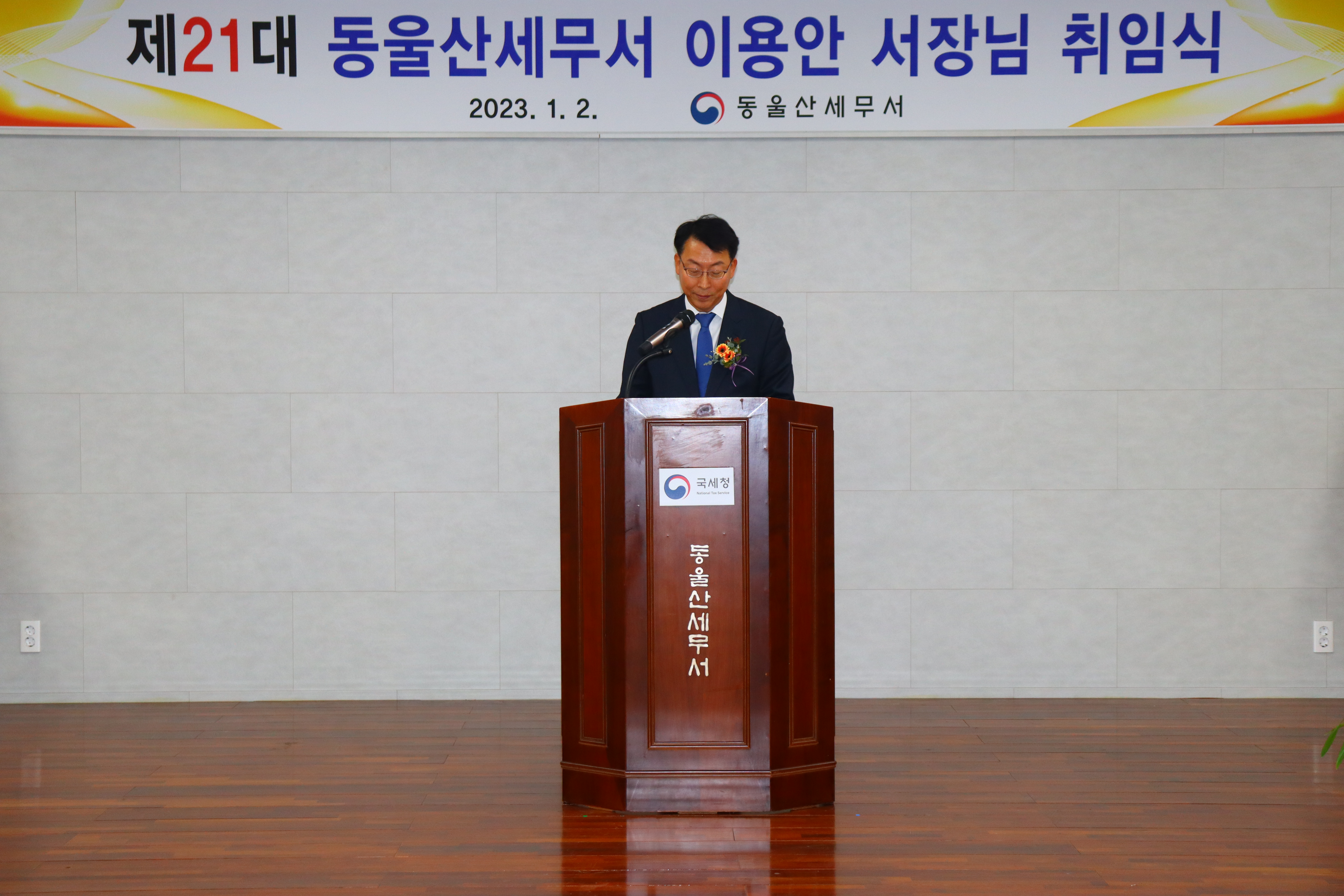 2023년1월2일(월) 동울산세무서는 제21대 이용안 세무서장의 취임식을 가졌습니다.
