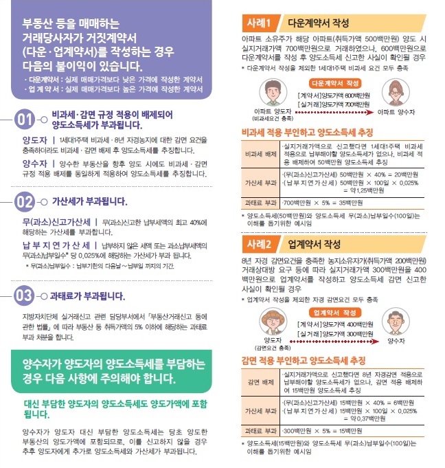 거짓계약서를 작성하면 양도소득세 비과세·감면 규정을 적용받을 수 없습니다.