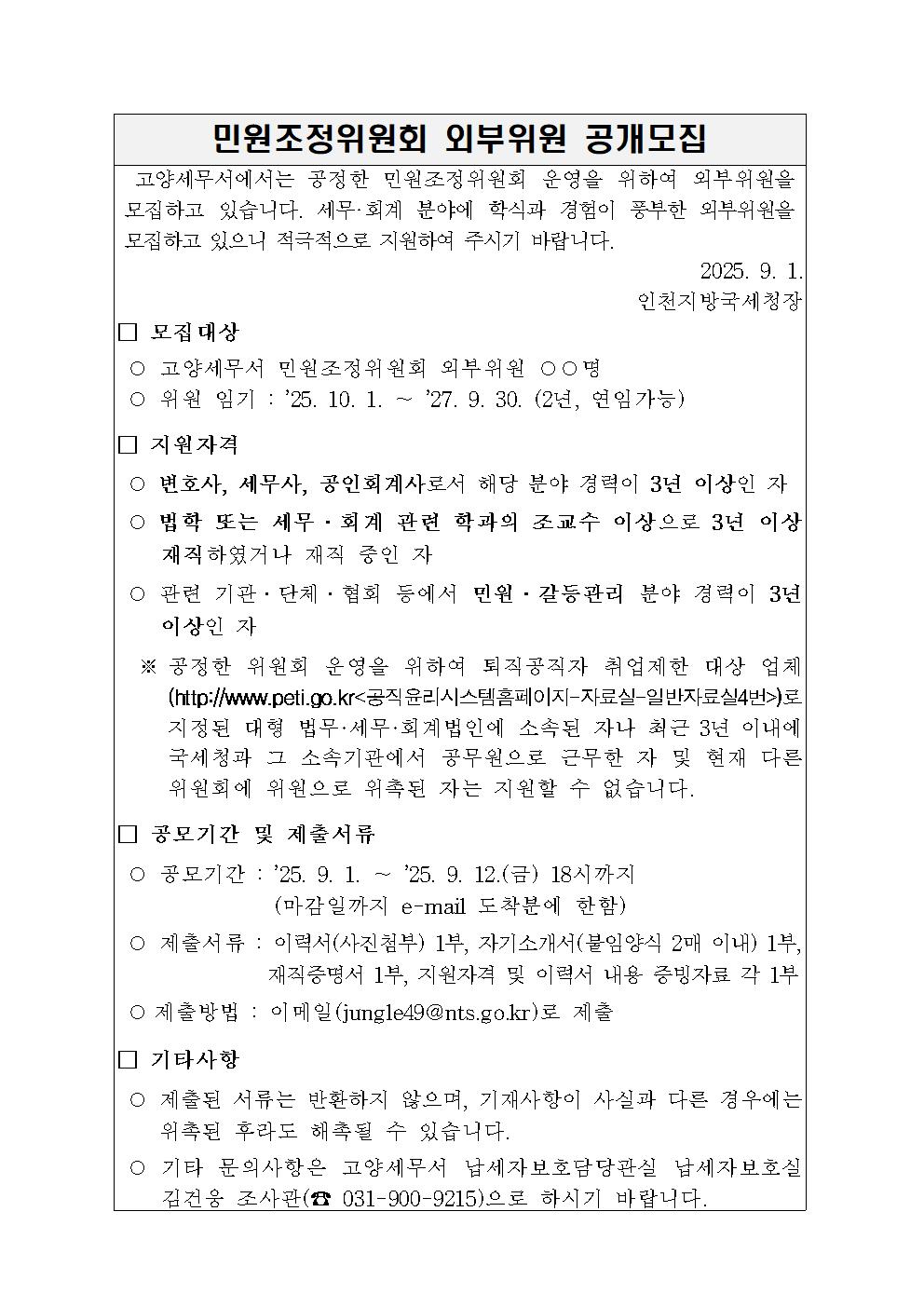 민원조정위원회 외부위원 공개모집