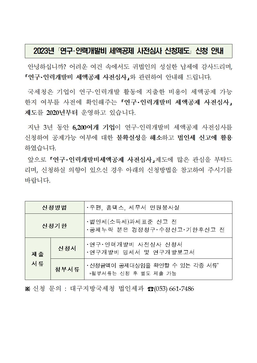 2023년 『연구·인력개발비 세액공제 사전심사』 제도 안내
