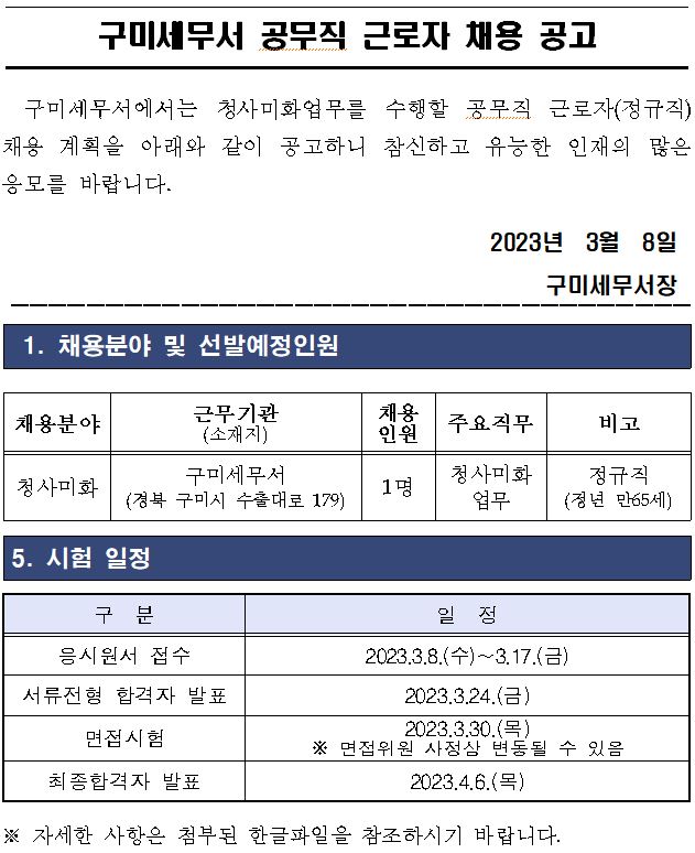구미세무서 공무직 채용공고(구미 제2023-1호).hwp