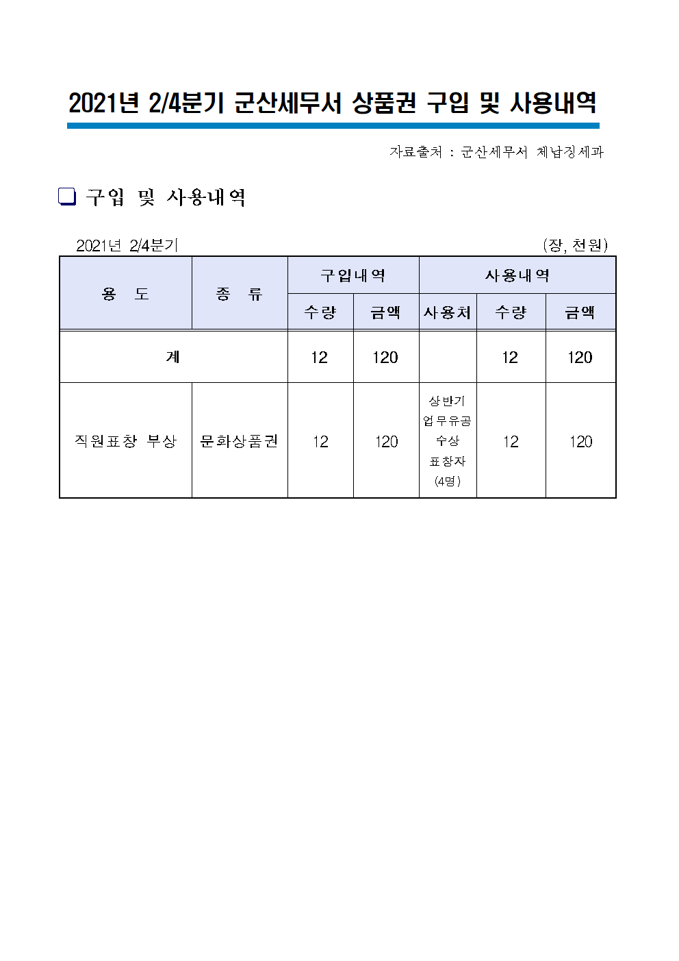 2021년 2분기 상품권 구입 및 사용 내역