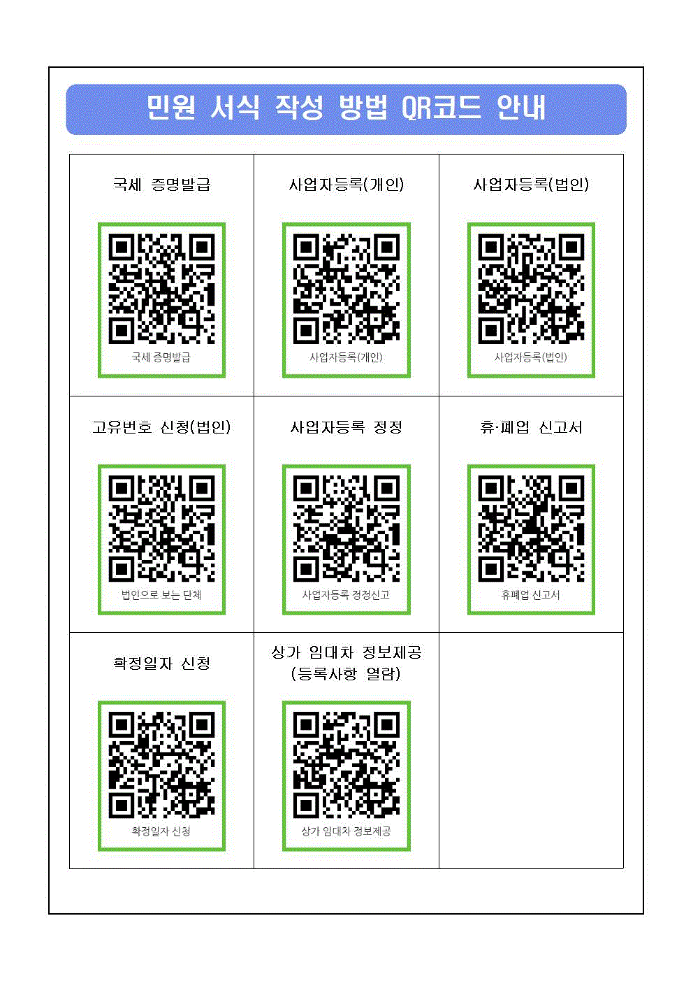 (민원실) 사업자 등록 신청·변경(정정)시 필요한 서류안내