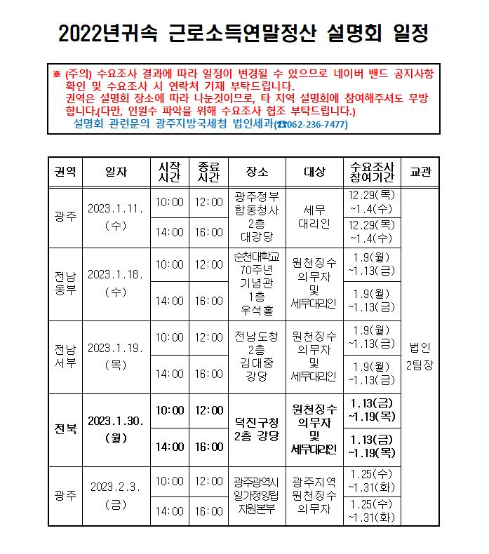 2022년귀속 근로소득 연말정산 설명회 일정 안내드립니다.