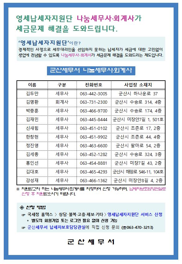 군산세무서 영세납세자지원단 나눔세무사·회계사