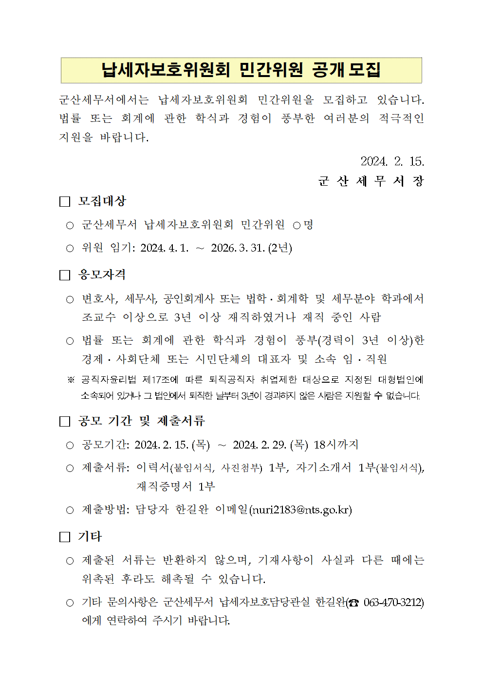 (공고문) 납세자보호위원회 민간위원 공개 모집(서식).hwpx
