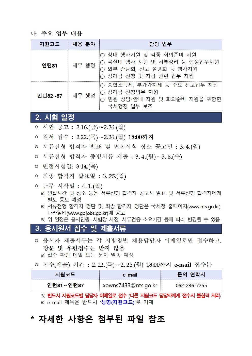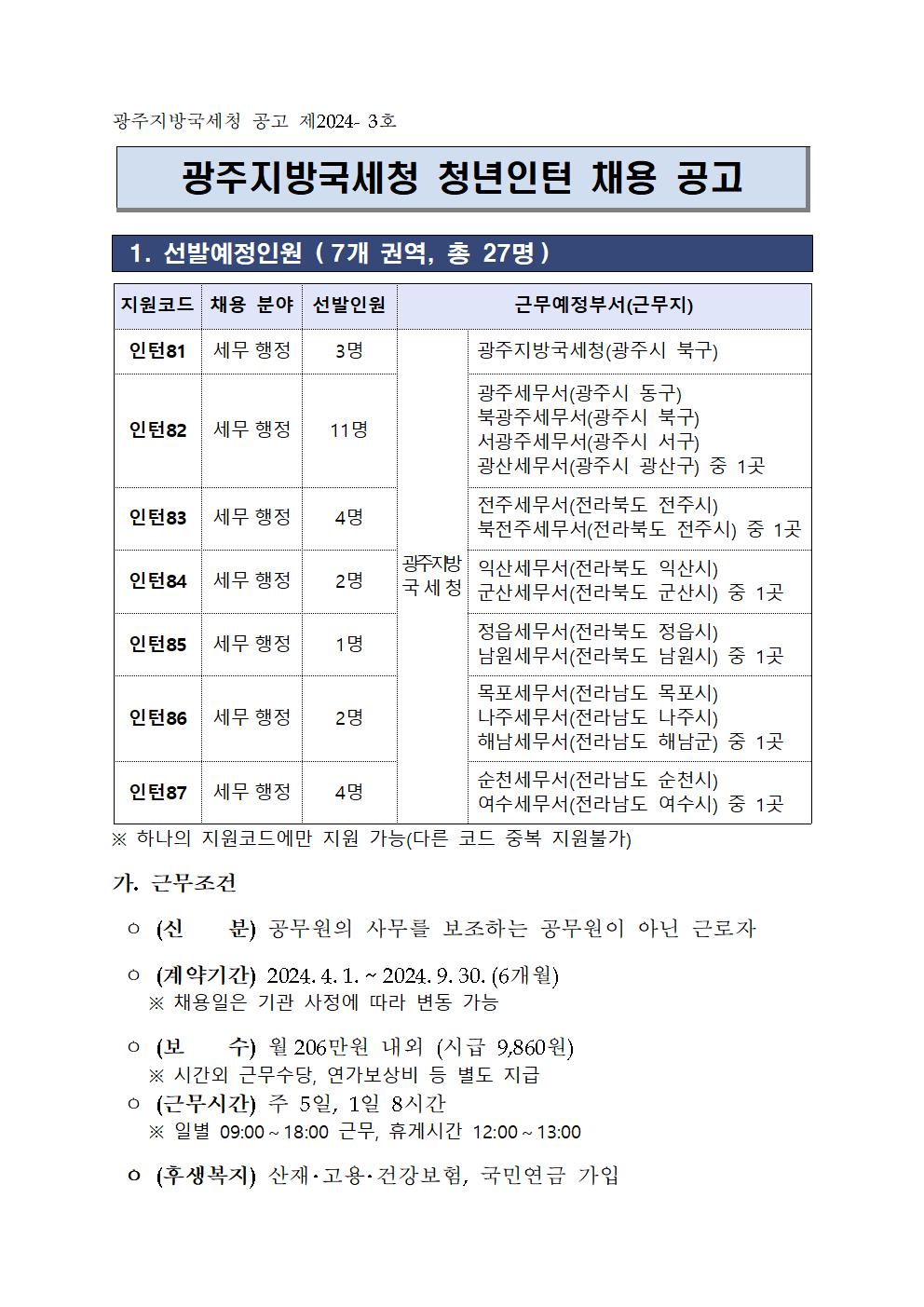 광주지방국세청 청년인턴 채용 공고입니다