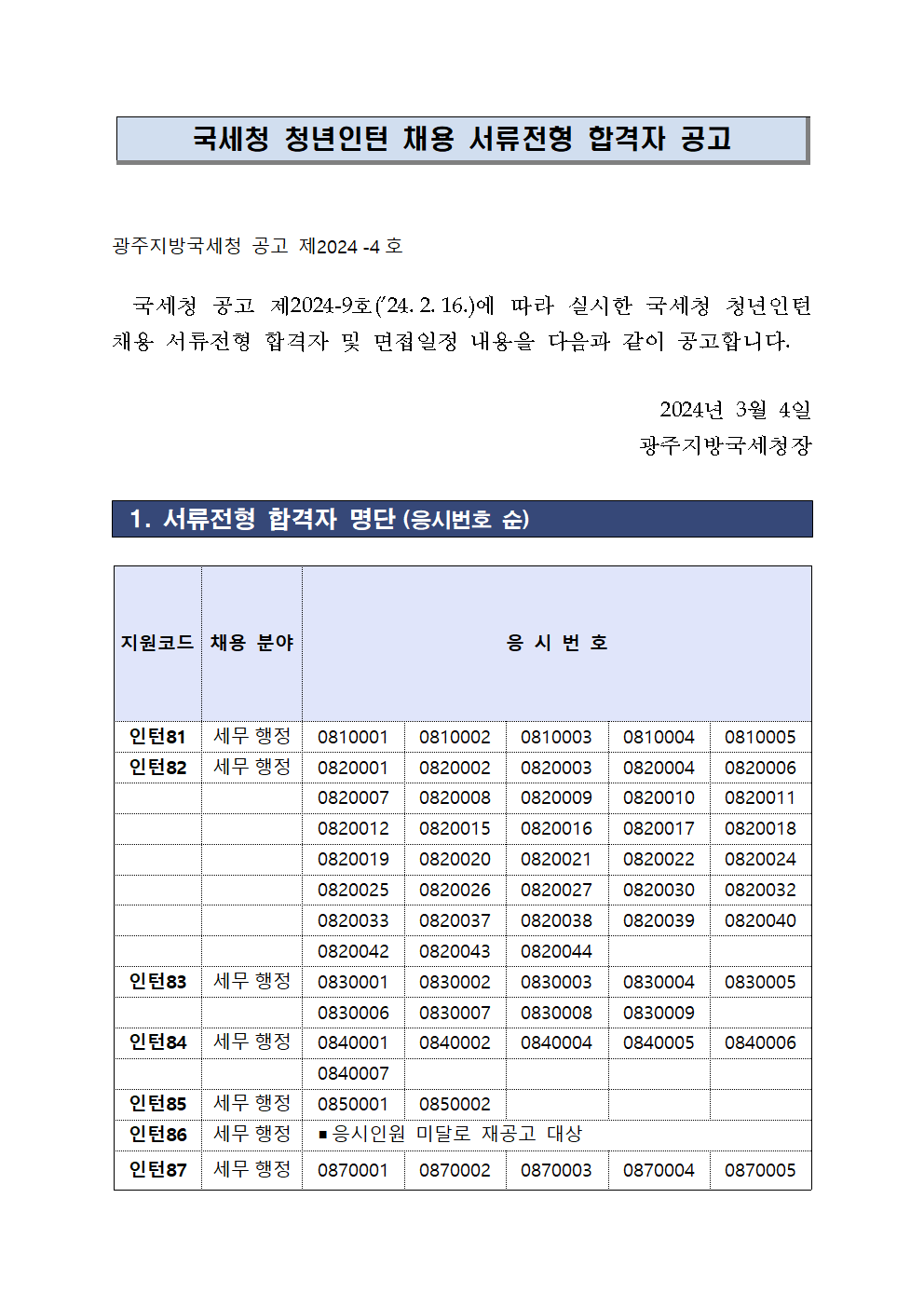 (광주청)국세청 청년인턴 서류전형 합격자 결정 및 공고문.hwp