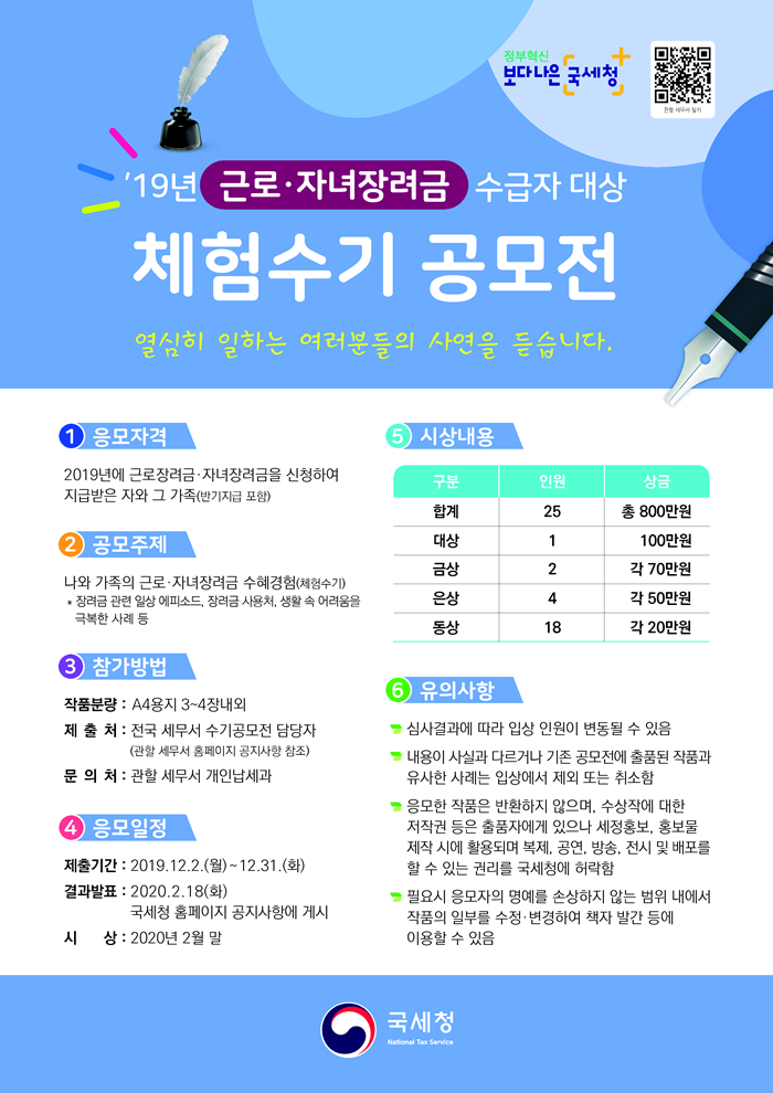 19년 근로·자녀장려금 수급자 대상 체험수기 공모전