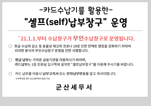 무인납부기 및 은행 ATM기를 이동한 납부 방법은 아래에 첨부하였으니 참조하시기 바랍니다.