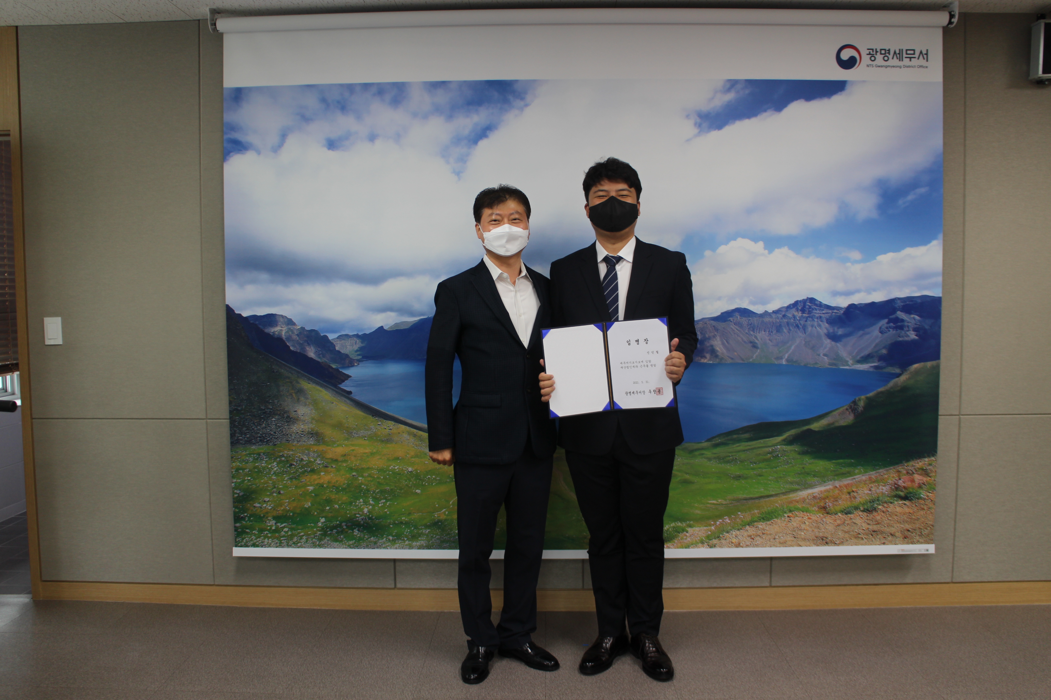 광명세무서(서장 우창용)는 2021.5.31.(월) 신규 임용직원 임명장 수여식을 진행하였습니다.
