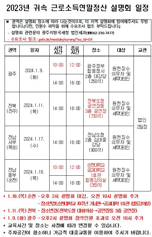 23년 귀속 근로소득연말정산 설명회 일정 안내