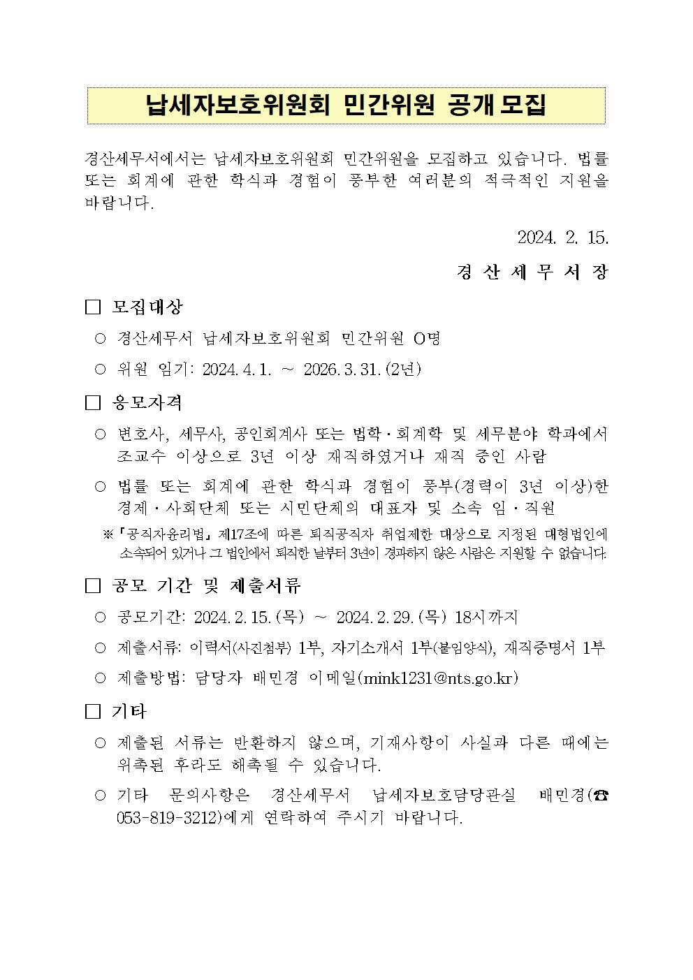 ★24년 납세자보호위원회 민간위원 공개모집.hwpx