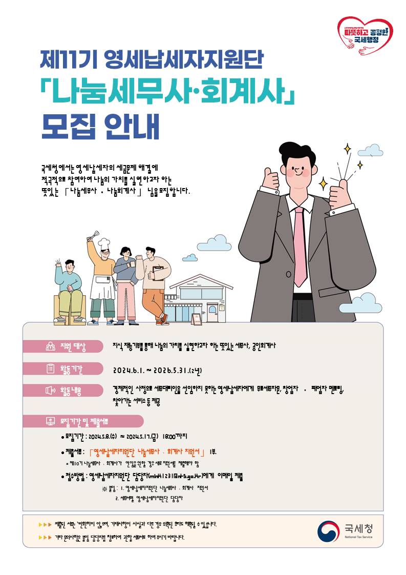 제11기 영세납세자지원단 「나눔 세무사・회계사」 모집 안내