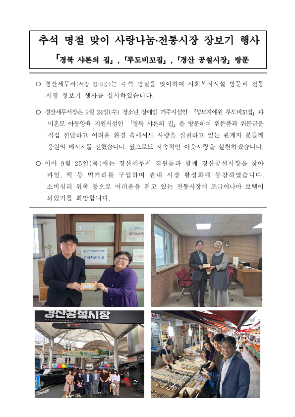 추석 명절 맞이 사랑나눔·전통시장 장보기 행사