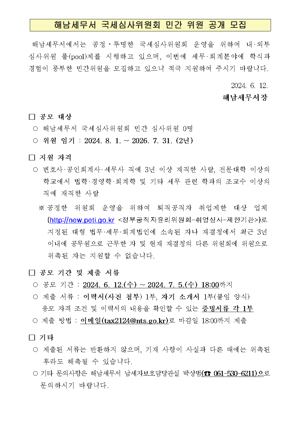 1_국세심사위원회 민간위원 공개모집 공고문.hwpx