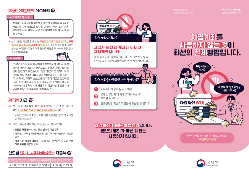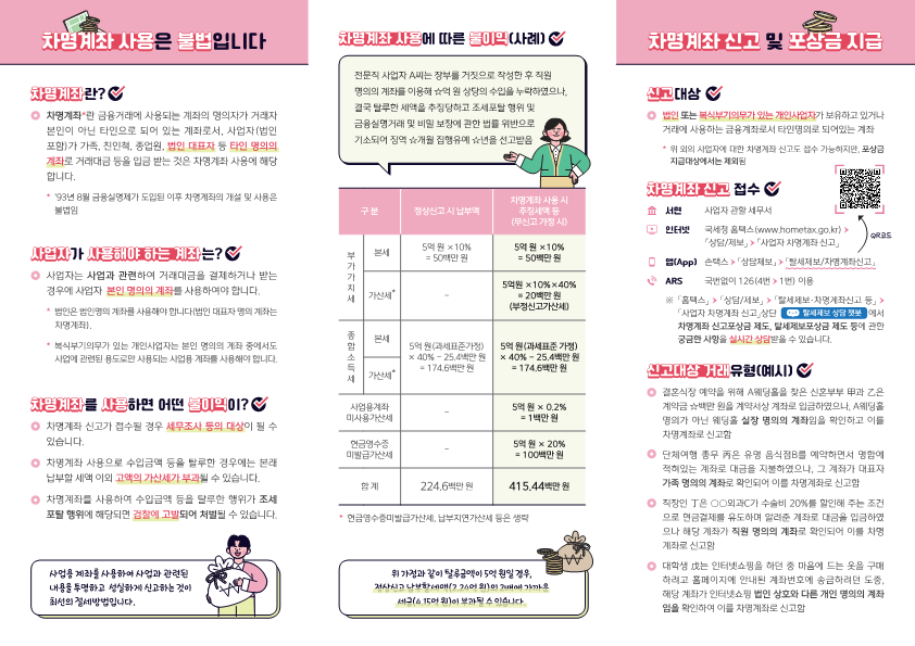 차명계좌 사용에 따른 불이익 및 신고·포상금 제도 안내