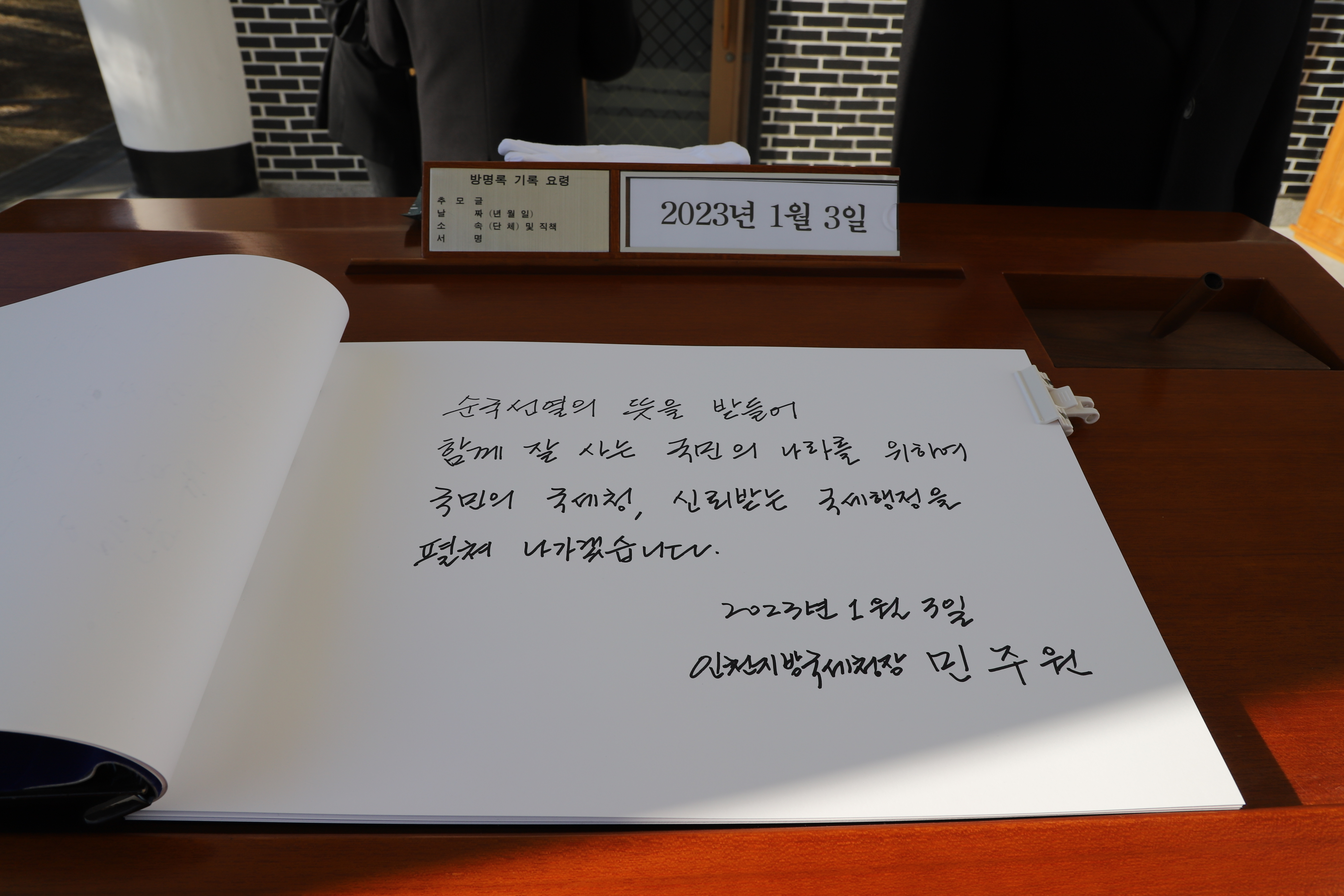 국민의 국세청, 신뢰받는 국세행정을 펼쳐 나가겠습니다.'는 다짐을 남겼습니다.