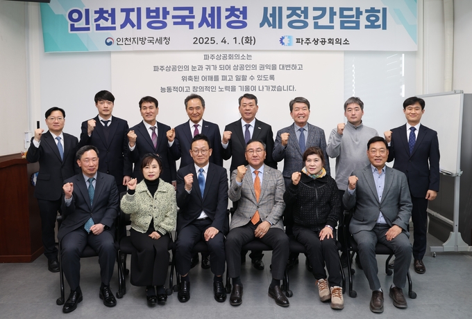 인천지방국세청(청장 김국현)은 지난 1일 파주상공회의소 회의실에서 김국현 인천지방국세청장, 서기열 파주세무서장 등