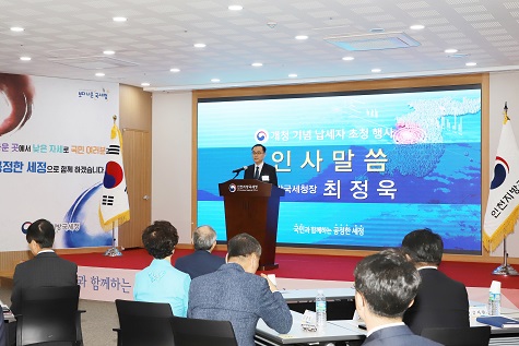 최정욱 청장은 인사말에서 “지역경제 성장 동력이 극대화 될 수 있도록 맞춤형 세정서비스를 제공하겠다”고 하면서, “납세자와의 소통도 더욱 강화해서 누구나 공감할 수 있는 세정을 펼쳐 나가겠다”는 의지를 밝혔습니다.