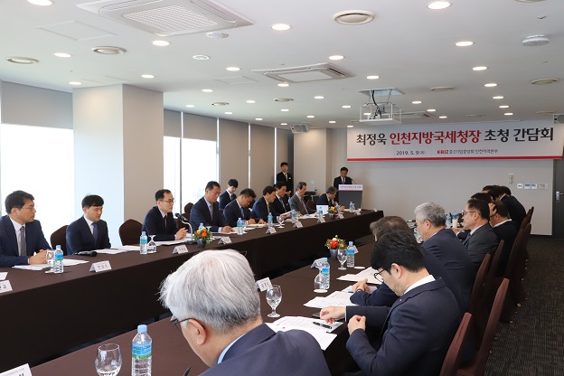 최정욱 인천지방국세청장은 5월9일 중소기업중앙회 인천지역본부(회장․오중석) 초청 간담회에 참석해 중소기업을 위한 맞춤형 세정지원 방안을 설명한데 이어, 중기 관계자들로부터 애로사항을 청취하였습니다.