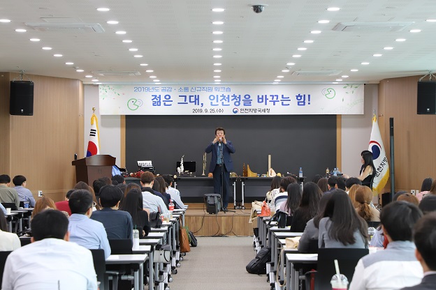 인천지방국세청(청장:최정욱)은 지난 9월 25일 인천청사 14층 대강당에서 2018년도 임용된 신규직원 125명을 대상으로 ‘공감·소통 신규직원 워크숍‘을 개최하였습니다.