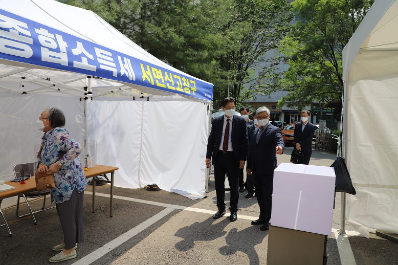 구진열 인천지방국세청장은 5.21(목) 고양세무서를 방문하여 근로장려금 신청 및 소득세 신고 진행 상황 등을 둘러보며 열심히 일하고 있는 직원들을 격려하였습니다. 구진열 청장은 "최근 코로나19 재확산 우려가 커지고 있는 만큼 방역 수칙을 철저히 준수해 달라"고 강조하 였습니다. 인천지방국세청은 앞으로도 일선 현장의 어려움을 경청하고 이에 대한 신속한 대책을 마련하는 등 소통을 지속적으로 이어나갈 예정입니다.