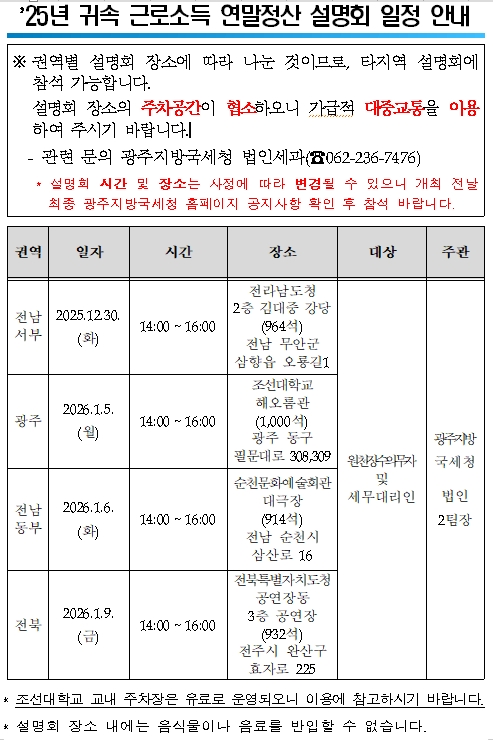 2025년 귀속 근로소득 연말정산 설명회 일정안내